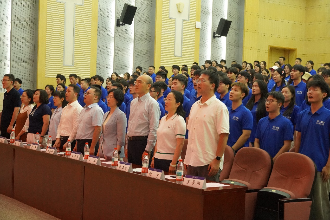 活动伊始,全体师生起立和唱国歌,开学典礼隆重开场。