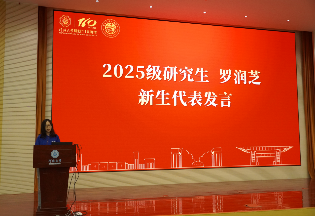 新生代表罗润芝在发言中,真挚表达了对未来研究生生涯的憧憬与奋进决心。她表示,将格外珍惜学院提供的高水准平台与优质资源,在后续学习中扎实筑牢理论基础,以实际行动锤炼专业能力,立志成长为兼具家国情怀与专业素养的环境领域学习者、践行者。