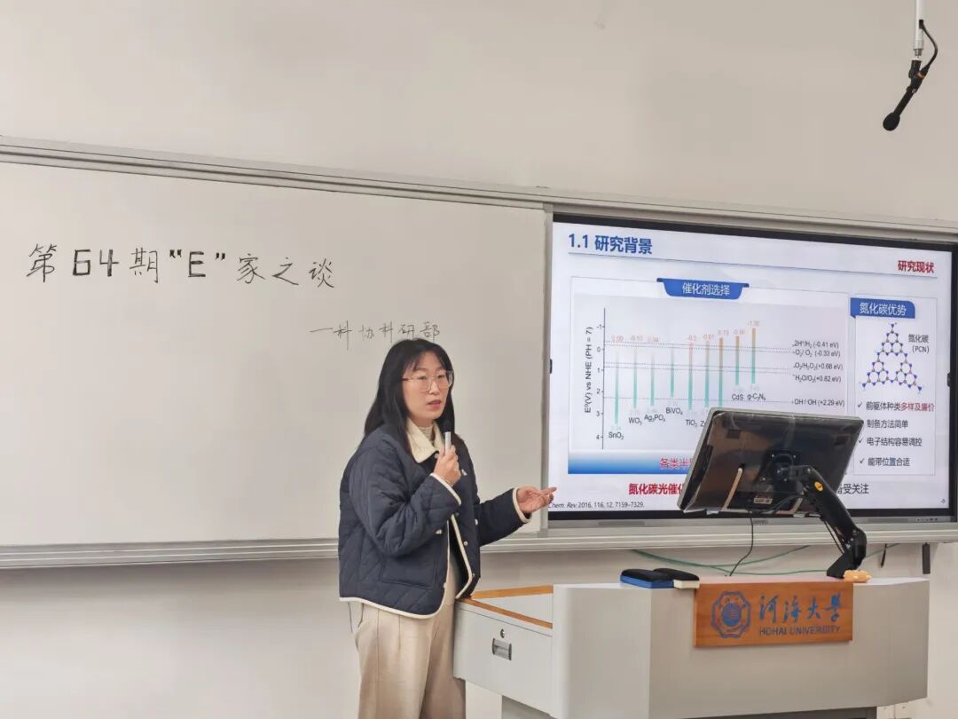 为了更好的向同学们传播环境方面的专业知识,了解电化学技术在水污染治理中的原理、方法与挑战,深化同学们对自身专业的认同感,我院于12月11日举办了第六十四期E家之谈讲座。本次特邀河海大学环境学院环境工程系副教授车慧楠老师为同学们带来“氮化碳微观结构调控及其性能增强机理”讲座,吸引了众多学生参与。